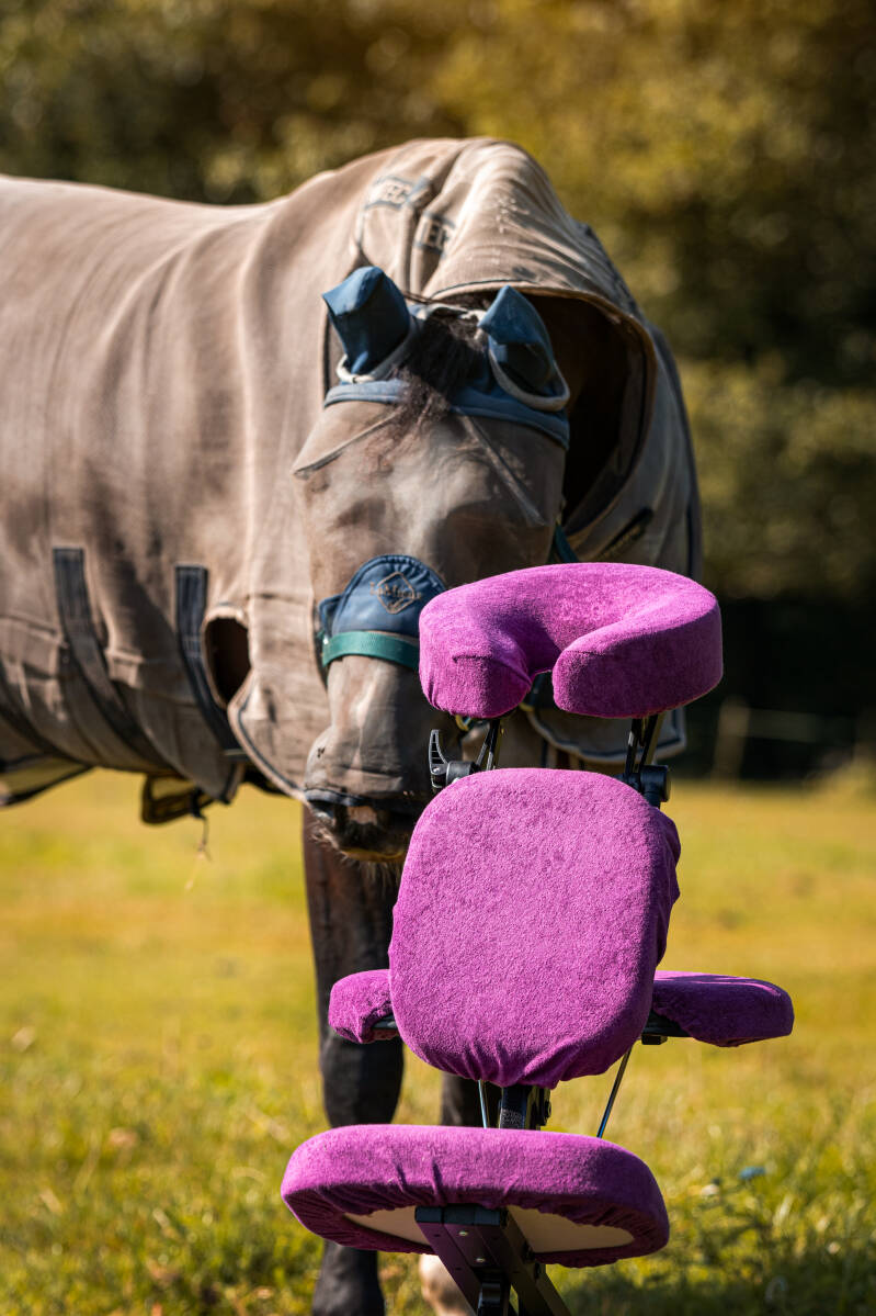 Stoelmassage voor de ruiter is hier een ideale uitkomst. De stoelmassage kan overal, bijvoorbeeld lekker buiten in de wei, op stal, binnen in de kantine, wat voor jou het prettigste is. Je kunt (dunne) kleding aanhouden en er komt geen olie aan te pas.